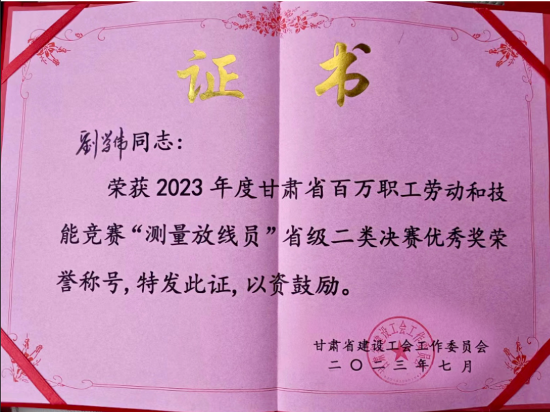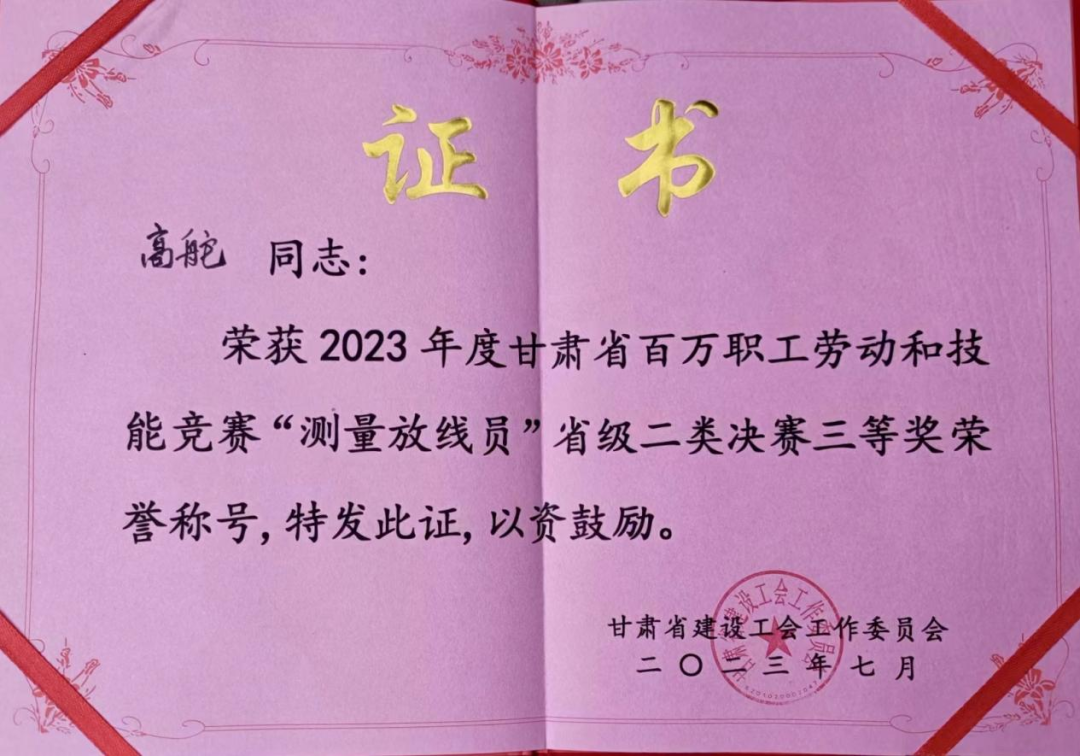 7月12日,2023年甘肅省百萬職工勞動(dòng)和技能競賽“測(cè)量放線員”省級(jí)二類決賽在蘭州新區(qū)落下帷幕,交科公司二公司高舵、三公司劉學(xué)偉分別獲得三等獎(jiǎng)和優(yōu)秀獎(jiǎng)。開展此類競賽旨在深入推進(jìn)產(chǎn)業(yè)工人隊(duì)伍建設(shè)改革,促進(jìn)產(chǎn)業(yè)工人技能提升、提高職業(yè)技能競賽質(zhì)量,進(jìn)一步實(shí)現(xiàn)“以賽代培、以培促賽”的目的,全省建筑業(yè)系統(tǒng)共17家單位34名選手入圍決賽。