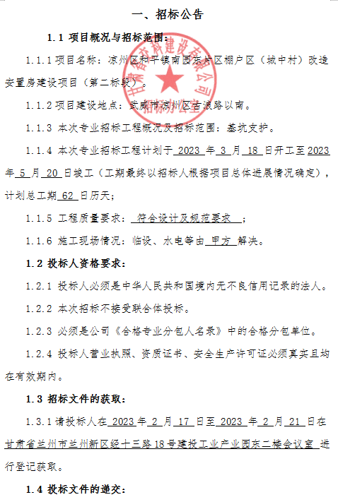涼州區(qū)和平鎮(zhèn)南園東片區(qū)棚戶區(qū)(城中村)改造安置房建設(shè)項目(第二標(biāo)段)專業(yè)分包招標(biāo)