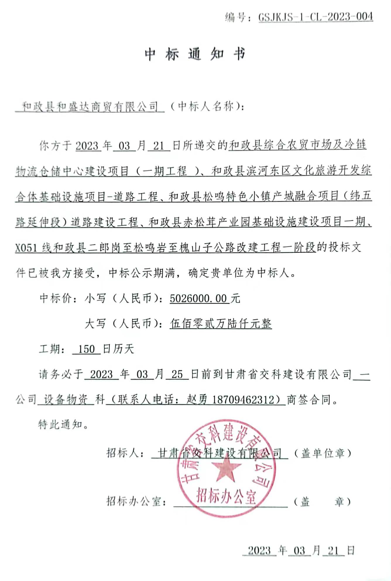 和政縣綜合農(nóng)貿(mào)市場及冷鏈物流倉儲中心建設(shè)項目(一期工程 )等項目中標(biāo)候選人及中標(biāo)通知書