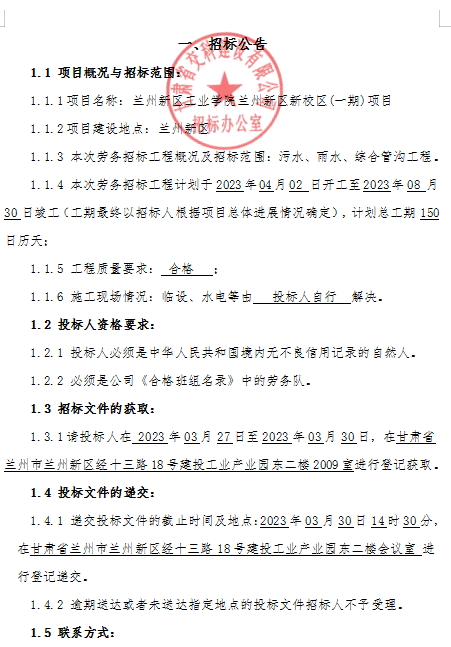 蘭州新區(qū)工業(yè)學(xué)院蘭州新區(qū)新校區(qū)(一期)項(xiàng)目招標(biāo)公告