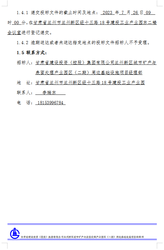 蘭州新區(qū)城市礦產(chǎn)與表面處理產(chǎn)業(yè)園區(qū)(二期)周邊基礎(chǔ)設(shè)施項目生石灰招標公告