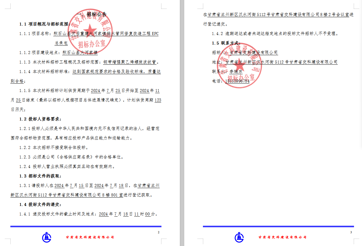 積石山縣災(zāi)后重建大河家鎮(zhèn)排水管網(wǎng)修復(fù)改造工程EPC總承包-鋼帶增強(qiáng)聚乙烯螺旋波紋管招標(biāo)公告