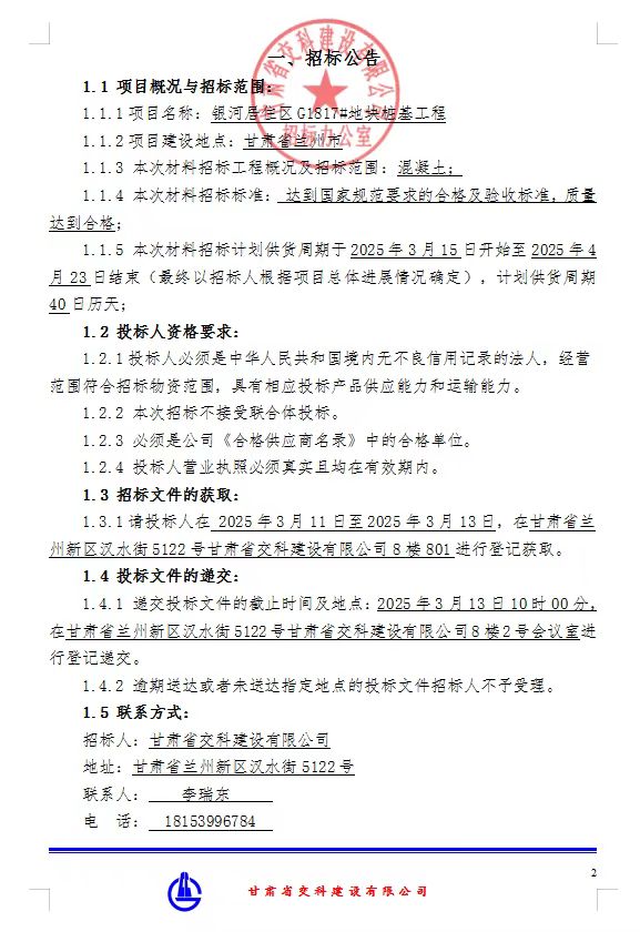 銀河居住區(qū)G1817#地塊樁基工程混凝土招標(biāo)公告