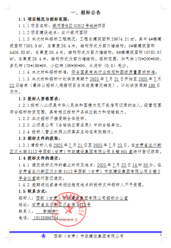 銀河居住區(qū)G1812號(hào)地塊項(xiàng)目-材料招標(biāo)-招標(biāo)公告